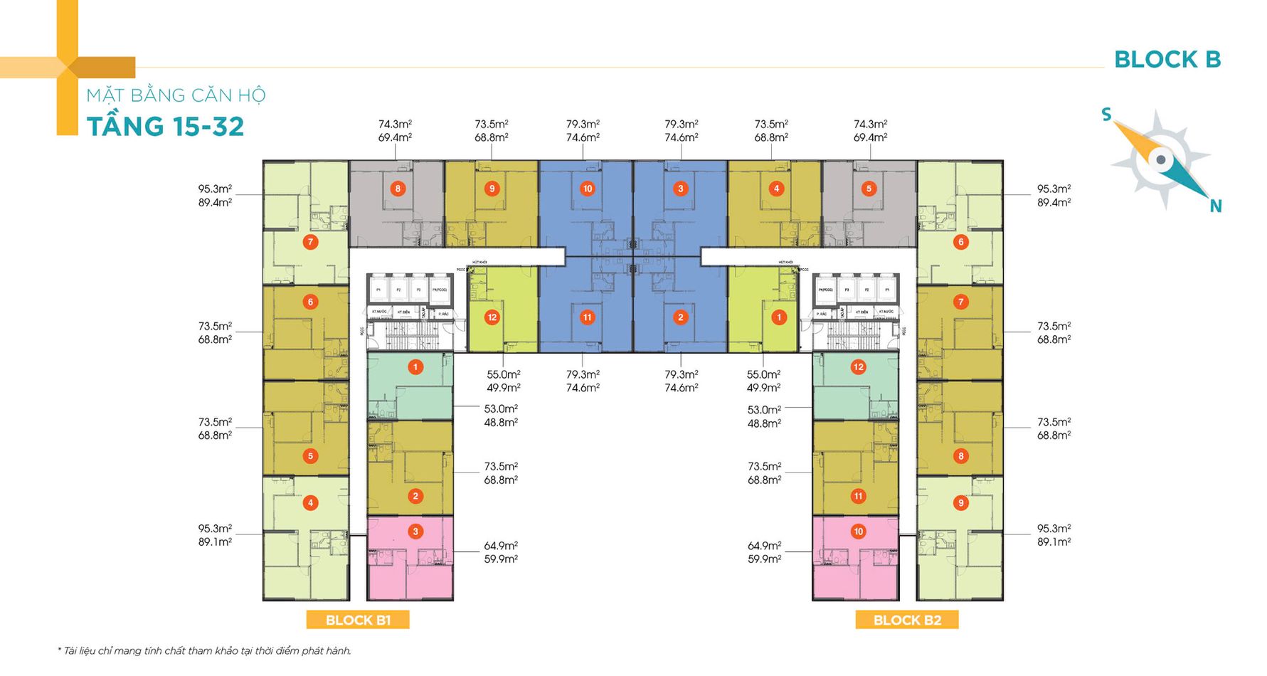 – LOẠI CĂN : 3 Phòng Ngủ ( 95m2) 5.4 Tỷ – 5.9 Tỷ