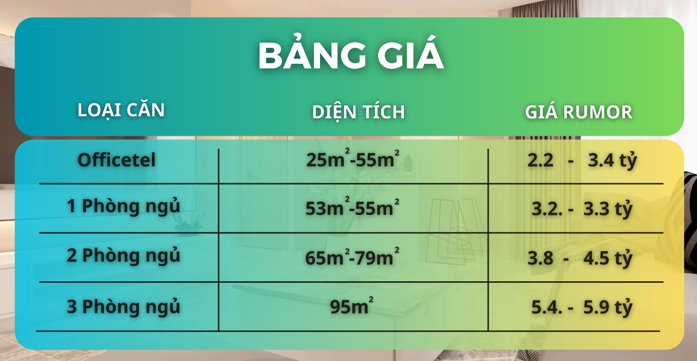 – LOẠI CĂN : Officetel ( 25m2 – 55m2) 2.2 Tỷ – 3.4 Tỷ