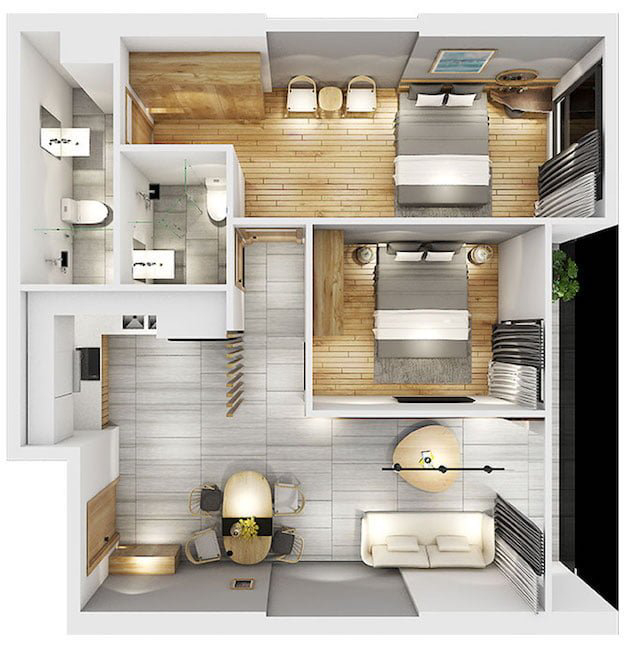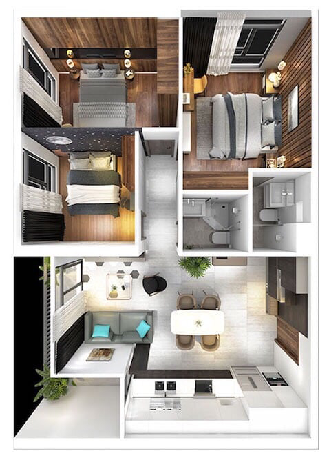 – LOẠI CĂN : 2 Phòng Ngủ ( 65m2 – 79m2) 3.8 Tỷ – 4.5 Tỷ